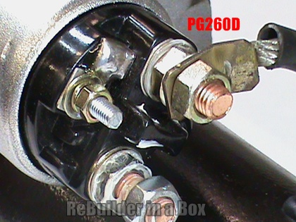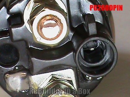 All the PG260 series starters all have the same solenoid except the “Pin” types. The pic on the right shows a pin solenoid. Notice the round terminal where the small ignition wire hooks up.