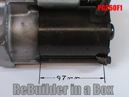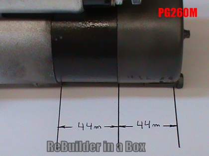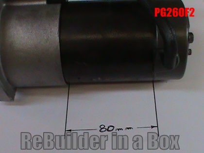 PG260 D starters have external bolts holding them together. The back plate is practically flat. The magnet housing portion (not including the back plate or the nose cone) is 79mm long as shown. “Pin” refers to the solenoid small wire plug in, as shown in the last set of pics. The solenoid is the only difference between the PG260D and the PG260Dpin.